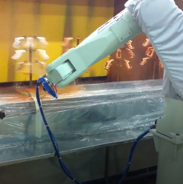A. Usually our integrator will do that, for us, the robot manufacturer, we can supply painting machine and connected robot, you only need to move the robot on your path. And give a solution how the product supplies.